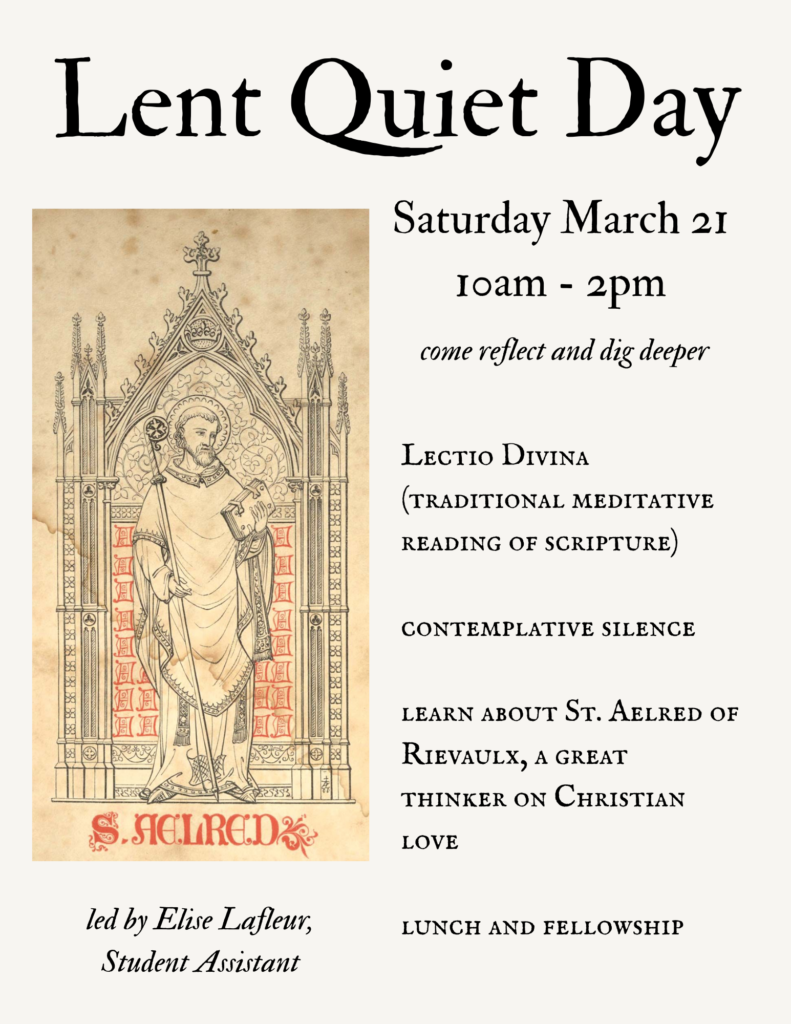 Lent Quiet Day: Sat, March 21 RSVP to Please Share This Share this content Opens in a new window Opens in a new window Read more articles Previous PostShrove Tuesday Pancake Supper Next PostLenten Book Group